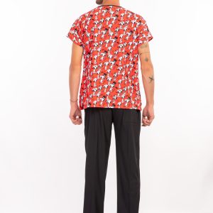 Likralı Kırmızı Snoopy Desenli Erkek Medikal Üniforma – Scrub Takım