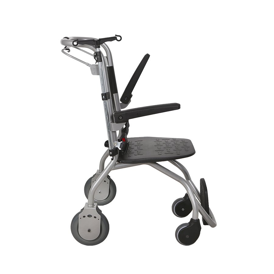 Bu özel sandalye, merdiven çıkabilen ya da inebilen mekanizmalara sahip olup, hastanın güvenliğini maksimum seviyede sağlayan bir üründür. Genellikle paletli sistemler veya kayış mekanizmaları ile donatılmıştır.