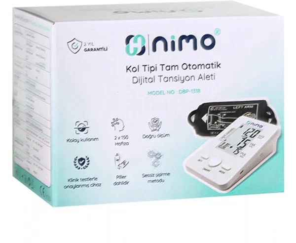 Nimo Kol Tipi Otomatik Dijital Tansiyon Aleti (DBP-1318), kullanıcılarına doğru, güvenilir ve pratik bir tansiyon takip deneyimi sunar. Gelişmiş ölçüm teknolojisi, geniş hafıza kapasitesi ve taşınabilir tasarımı ile tansiyon ölçümünü kolaylaştırır. Tansiyon takibini düzenli hale getirmek ve sağlık durumunu daha iyi kontrol etmek isteyen kullanıcılar için ideal bir üründür. Sağlığınızı güvende tutmak ve düzenli olarak tansiyonunuzu kontrol etmek için Nimo DBP-1318’i tercih edebilirsiniz.