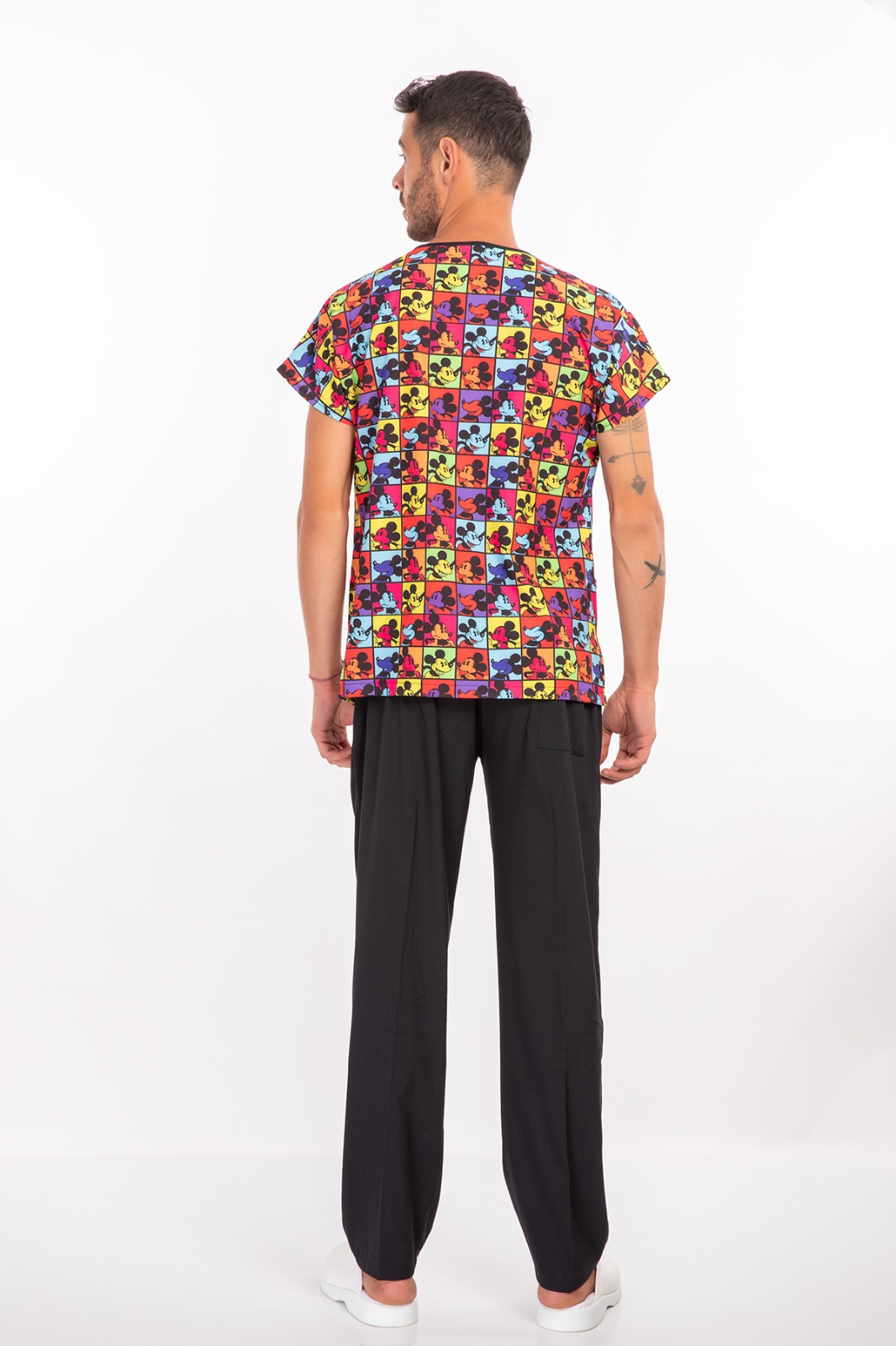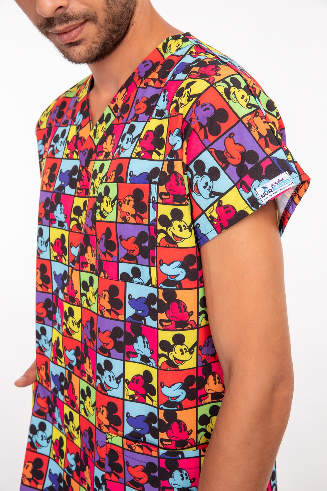 Likralı Kareli Mickey Desenli Medikal Üniforma, sağlık çalışanlarının uzun nöbetlerde rahat hissetmesi için özel olarak tasarlandı. Nefes alabilen kumaşı, esnek yapısı ve modern desenleriyle doktor, hemşire ve tüm sağlık personeli için idealdir.