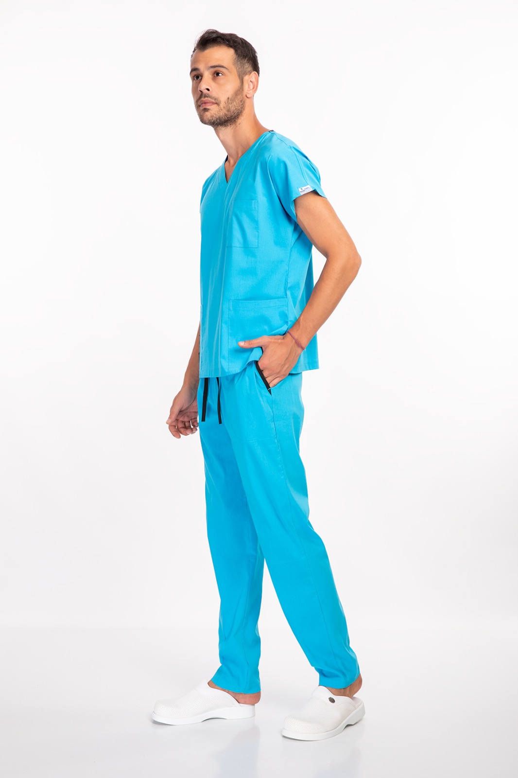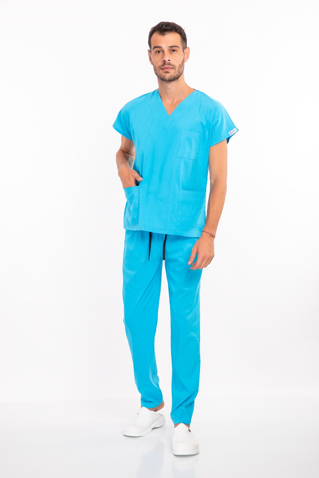 Likralı Turkuaz Erkek Medikal Üniforma, sağlık çalışanlarının uzun nöbetlerde rahat hissetmesi için özel olarak tasarlandı. Nefes alabilen kumaşı, esnek yapısı ve modern desenleriyle doktor, hemşire ve tüm sağlık personeli için idealdir.